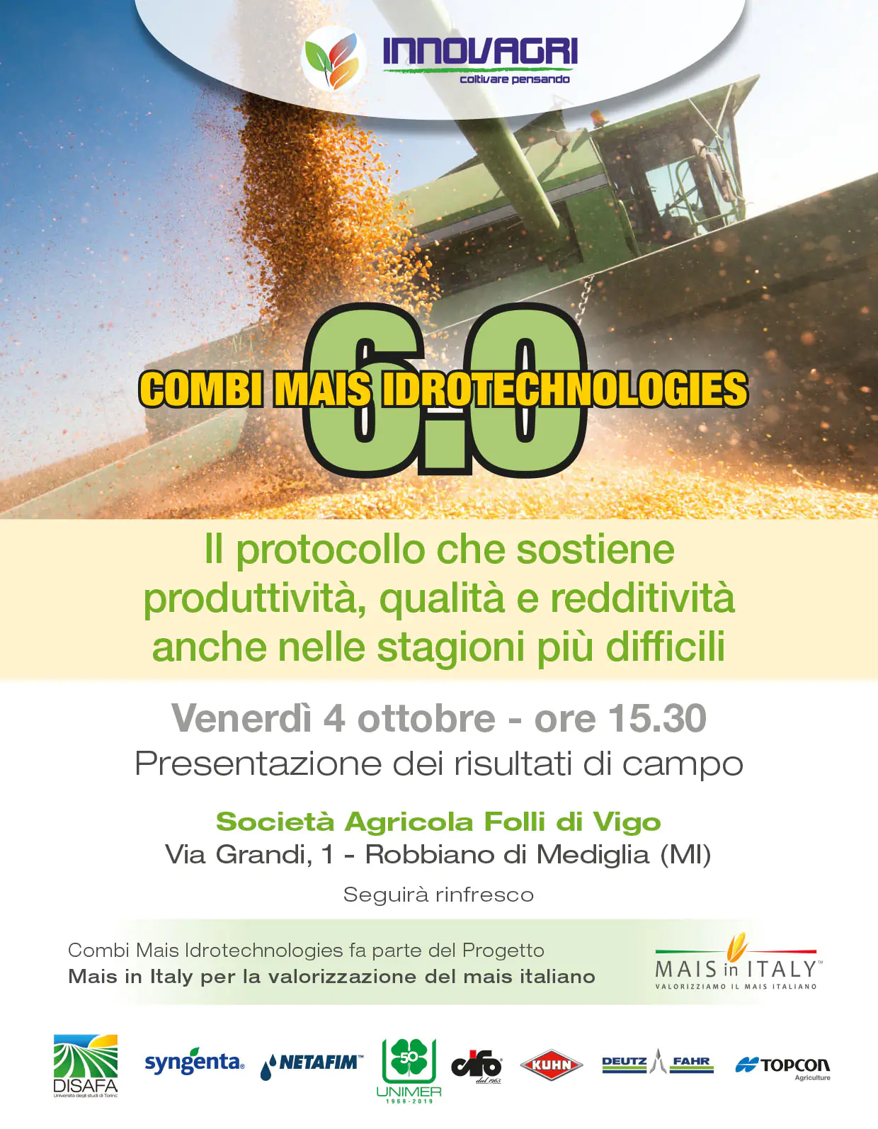 Venerdì 4 ottobre 2019 dalle ore 15.30, si terrà presso l’Az. Agricola Folli dei F.lli Vigo la presentazione dei risultati di campo del progetto “Combi Mais 6.0”, progetto di cui Cifo è ormai partner storico.