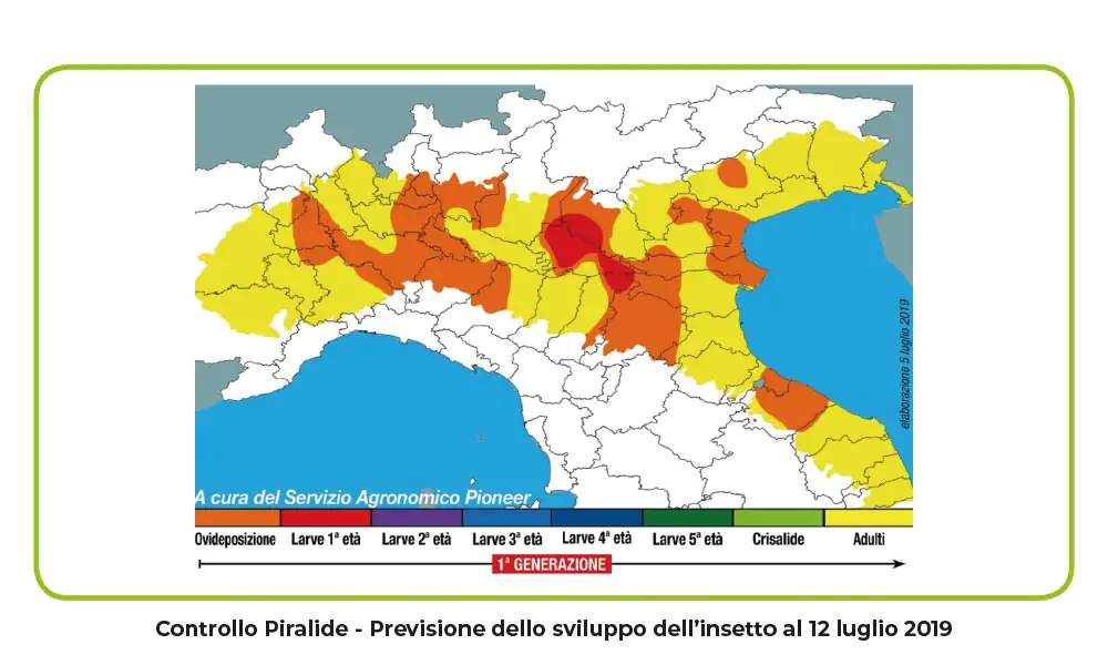 L’alta pressione che continua ad insistere sull’areale padano sta favorendo lo sviluppo della popolazione di Piralide. Su gran parte degli ambienti maidicoli della Pianura Padana sono iniziate le ovideposizioni e nelle zone più calde possiamo già trovare le larve di 1a età.
