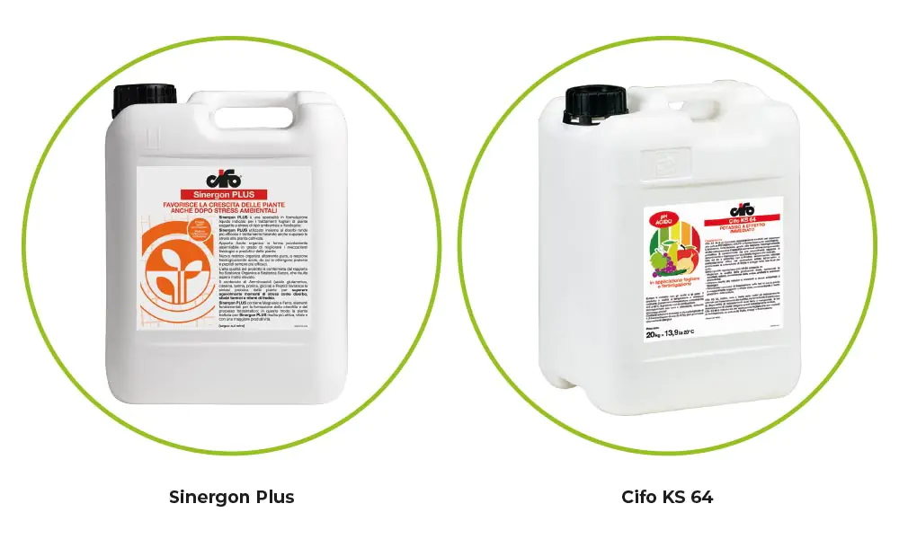 In abbinamento a Sinergon Plus, Cifo propone l’utilizzo di Cifo KS 64, formulato a pronto effetto, la cui peculiarità è quella di essere un potassio a reazione acida: ciò ne permette un assorbimento immediato ed induce la pianta ad idratarsi ed al contempo a velocizzare i processi fisiologici naturali e di fotosintesi clorofilliana. Questi processi sono fondamentali per la pianta per poter accumulare ancora di più amido e proteine all’interno delle cariossidi e dello stocco. Dose consigliata: 4 kg per ettaro.